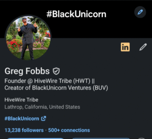Gregory Eugene Fobbs (BlackUnicorn), Founder of HiveWire Tribe